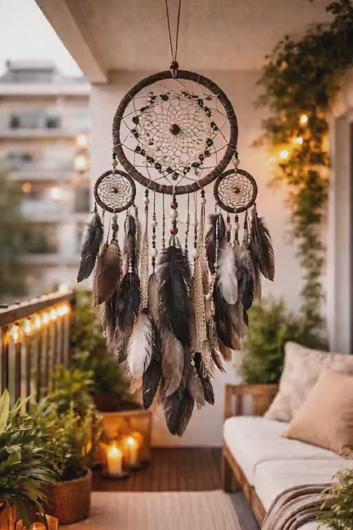 Crafted with precision and a modern artisan touch, our dream catcher features a beautifully structured hoop paired with soft, floating feathers. Its minimalist elegance brings a gentle calm to any room, creating a subtle statement of luxury without trying too hard. More than decor, it feels like a quiet symbol of peace—light, graceful, and effortlessly premium.